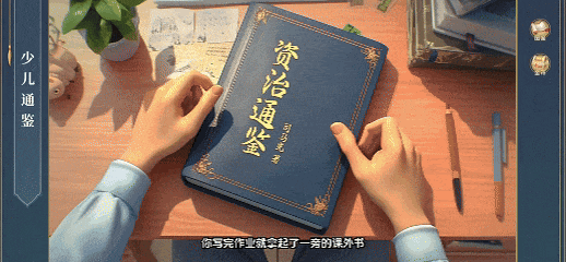 在故事开篇,我们以小学生日常学习的情景引入,带孩子们穿越进少儿通鉴的世界,开启一场奇妙的穿书之旅。